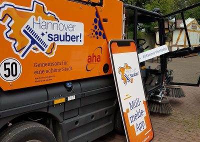 Viele Besucher nutzten die Gelegenheit, einen Hannoccino-Becher mit dem neuen Deckel gegen 2 Euro Pfand zu erwerben. Großer Star war allerdings die orangefarbene Kehrmaschine mit Hannover-sauber-Logo, in der Besucher sich ablichten lassen konnten. Die Bilder gab ausgedruckt als Erinnerung mit nach Hause.